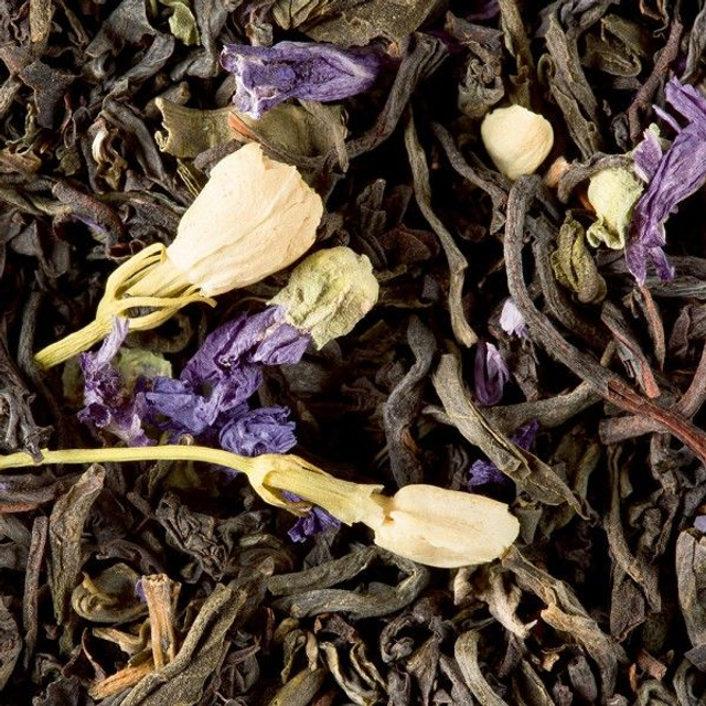 Mélange de thés (noir, vert et vert au jasmin), aux arômes de bergamote et de vanille. Il offre une tasse douce et délicatement fleurie.