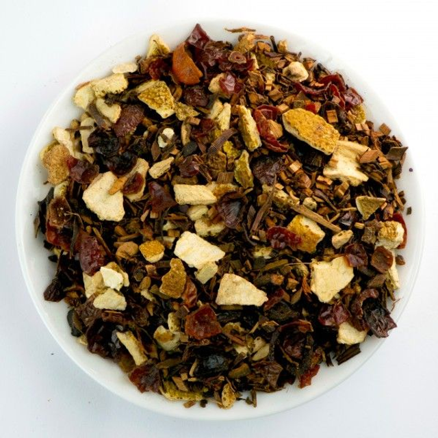 Profitez d'une petite visite dans la nature sauvage à couper le souffle ! La douceur du Honeybush est en parfaite harmonie avec les notes de l'orange et la légère acidité de l'ananas. De fins morceaux de cannelle donnent un goût suave et agréable.